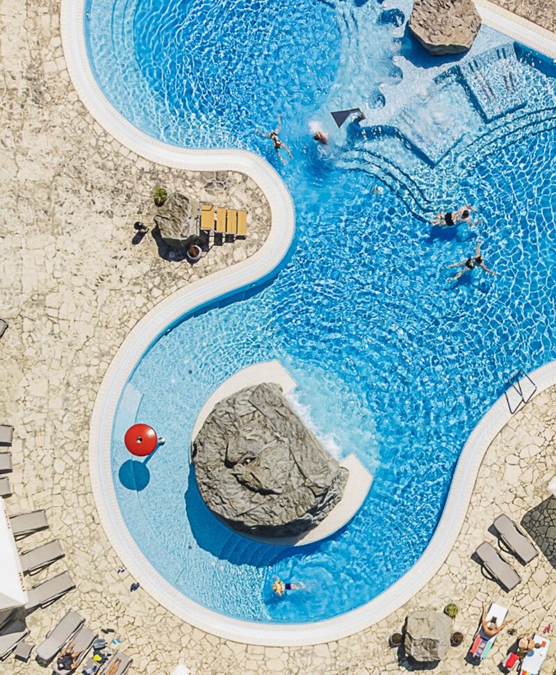 Czynny przez cały rok basen spokojnie pozwoli Ci cieszyć się pływaniem. Wymiary to 16 x 12,5m, a głębokość 1,35m. Tuż obok znajduje się brodzik dla najmłodszych o wymiarach 8 x 5,7m o głębokości 90cm. Temperatura wody w obu basenach wynosi około 30 stopni.